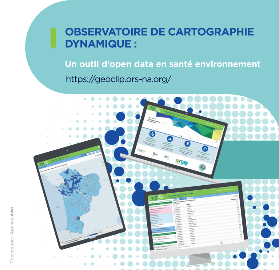 En parallèle, des indicateurs en santé environnement à un échelon infra-départemental continuent à être déployés et actualisés sur le site d’open-data dédié de l’ORSE*Observatoire Régional Santé Environnement (outil Geoclip). Des formations à l’outil géoclip sont proposés régulièrement dans les territoires.