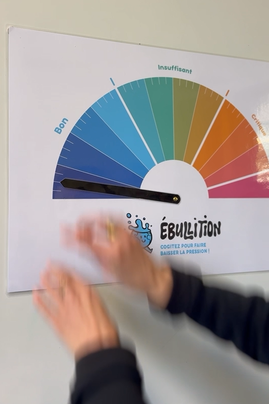 « Ebullition, Cogitez pour faire baisser la pression ! » est un jeu collaboratif ludique conçu par l’association Ceseau. Il permet, en une heure seulement, d’identifier les problématiques principales engendrées par le changement climatique sur l’eau en Nouvelle-Aquitaine. Le jeu de cartes propose également des pistes d’actions collectives et individuelles, avant que la pression n’atteigne son maximum !